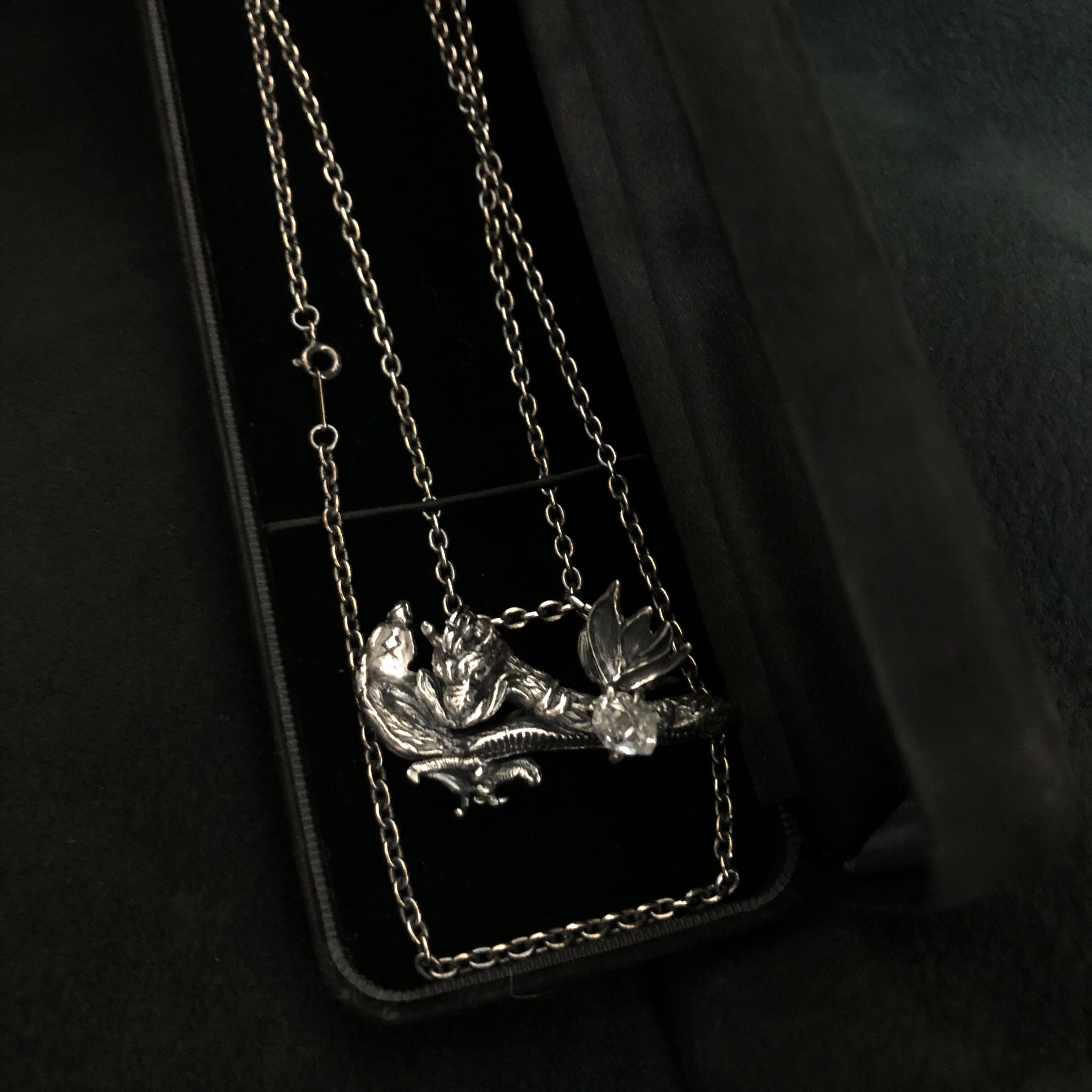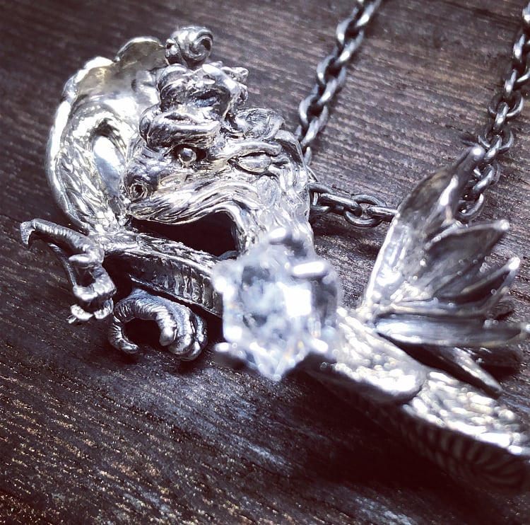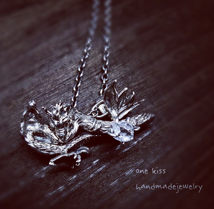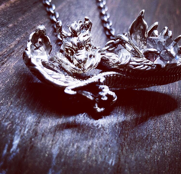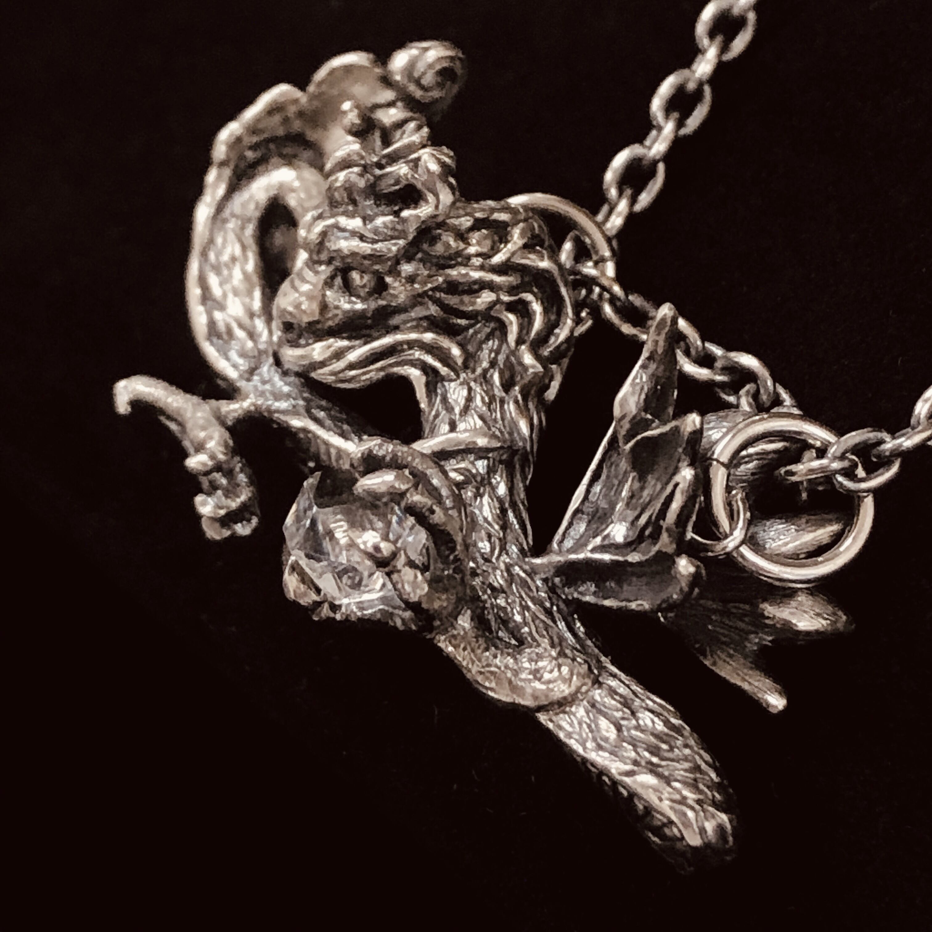 掴んでいるストーンはやはり水晶が良いと思い、あえて丸玉では無くハーキマーダイアモンドを選びました。